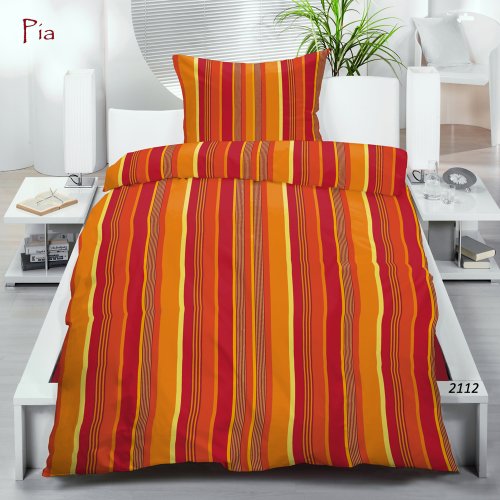 Bettwäsche Garnituren 2-teilig Microfaser Grösse 1x Bettbezug 135x200 cm und 1x Kissenbezug 80x80 cm, "Pia" Farbe rot, orange, gelb