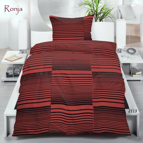 Bettwäsche Garnituren 2-teilig Microfaser Grösse 1x Bettbezug 135x200 cm und 1x Kissenbezug 80x80 cm, "Ronja" Farbe rot, schwarz