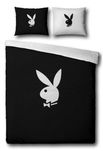 Playboy 8715944023511 Bettwäsche - Classic 135x200 cm und 80x80 cm, Polyester Glanzsatin schwarz